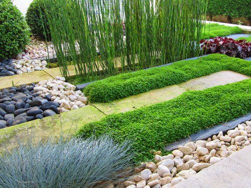 ซอฟต์สเคป หมายถึง องค์ประกอบทางธรรมชาติ ได้แก่ พรรณไม้และน้ำ มีส่วนในการลดความกระด้างของฮาร์ดสเคปลงได้ การใช้ฮาร์ดสเคปและซอฟต์สเคปในสวนอย่างสมดุล นอกจากช่วยเพิ่มพื้นที่ใช้สอยในสวนแล้ว ยังทำให้สวนสวยงามมีชีวิตชีวา งานปลูกไม้หรืองานซอฟสเคป ถือเป็นหัวใจหลักของงานปรับปรุงภูมิทัศน์ ซึ่งพันธุ์ไม้แต่ละชนิดล้วนแต่มีลักษณะทางธรรมชาติที่แตกต่างกันออกไป ทั้งนี้การเลือกพันธุ์ไม้แต่ละชนิดที่จะมาใช้ในสวนต้องสอดคล้องไปกับรูปแบบของสวนเหมาะสมกับสภาพแวดล้อม